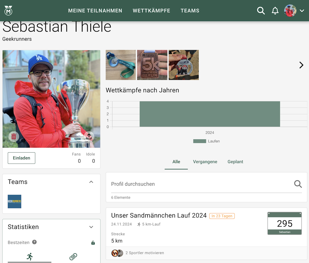 Man kann sich auch in Teams organisieren und gemeinsame Ergebnisse anzeigen. (Natürlich gibt es uns dort auch schon.)